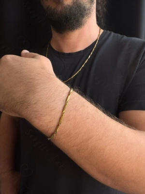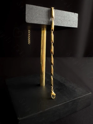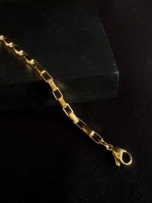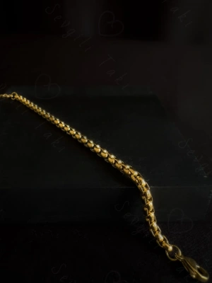Köşeli Model Gold Çelik Zincir Çocuk Bileklik | Kuzey Serisi
