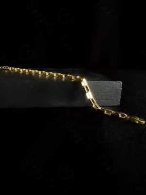 Dikdörtgen Zincirli Gold Çocuk Çelik Bileklik | 777 Serisi