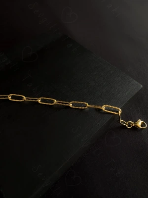 Paperclip Kabartma Çocuk Gold Çelik Zincir Bileklik | Ida Serisi