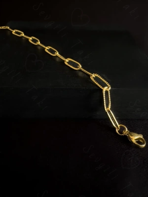 Paperclip -Gurmet Model İki Zincirli Gold Çelik Bileklik | Sevgili Takı Koleksiyonu