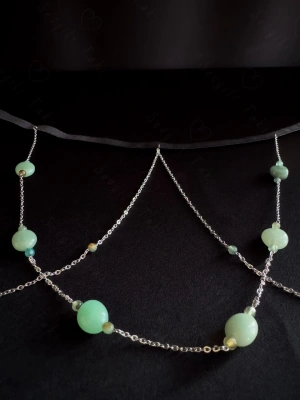 Akik ve Aventurin Doğal Taşlı Çelik Zincir Bacak Takısı -Sevgili Takı Koleksiyonu