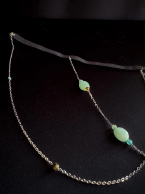 Amazonit Doğal Taşlı Çelik Kolye -Gezegen Serisi