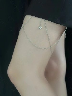 Dumanlı Kuvars Doğal Taşlı Çelik Zincir Bacak Takısı -777 Serisi