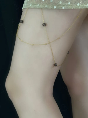Dumanlı Kuvars Doğal Taşlı Çelik Zincir Bacak Takısı -777 Serisi