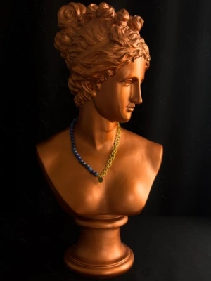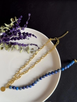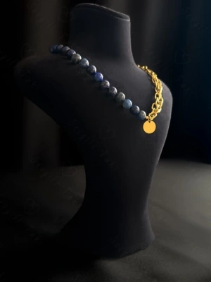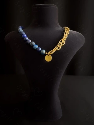 Lapis Lazuli Doğal Taş Kabartma Zincirli Gold Çelik Kolye | Sevgili Takı Koleksiyonu