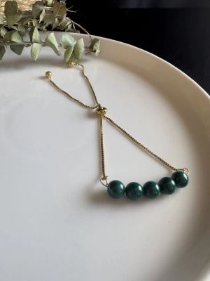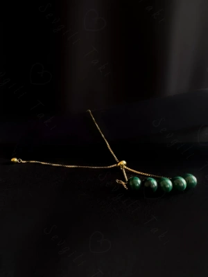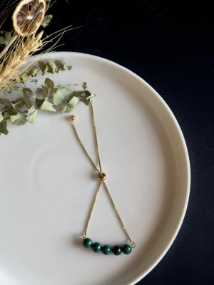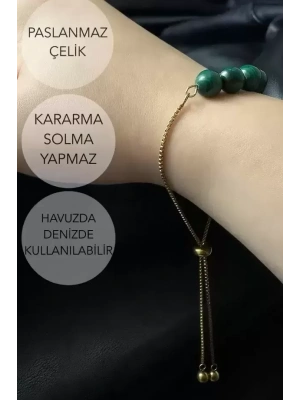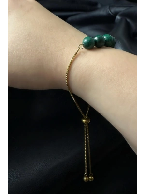 Malahit Doğal Taşlı Ayarlanabilir Çelik Bileklik -Miracle Serisi