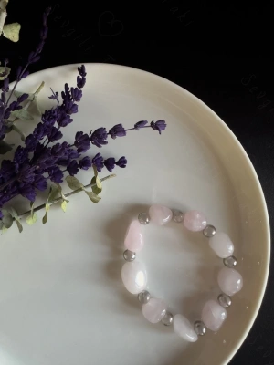 Pembe Kuvars Doğal Taşlı Bileklik -Vega Serisi